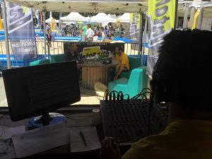 On a délocalisé le studio pour aller sur l’événement « C’est l’été ». J’ai été missionnée aussi sur le poste de journaliste pour récolter des informations sur le stand SKODA (sur lequel on avait mis un place un vélo d’intérieur qui reproduisait à l’identique le tracé du tour de France, ce sont les passants qui complétaient le circuit) et passer à l’antenne pour les diffuser en direct afin que les auditeurs soient au courant de l’avancée du circuit.