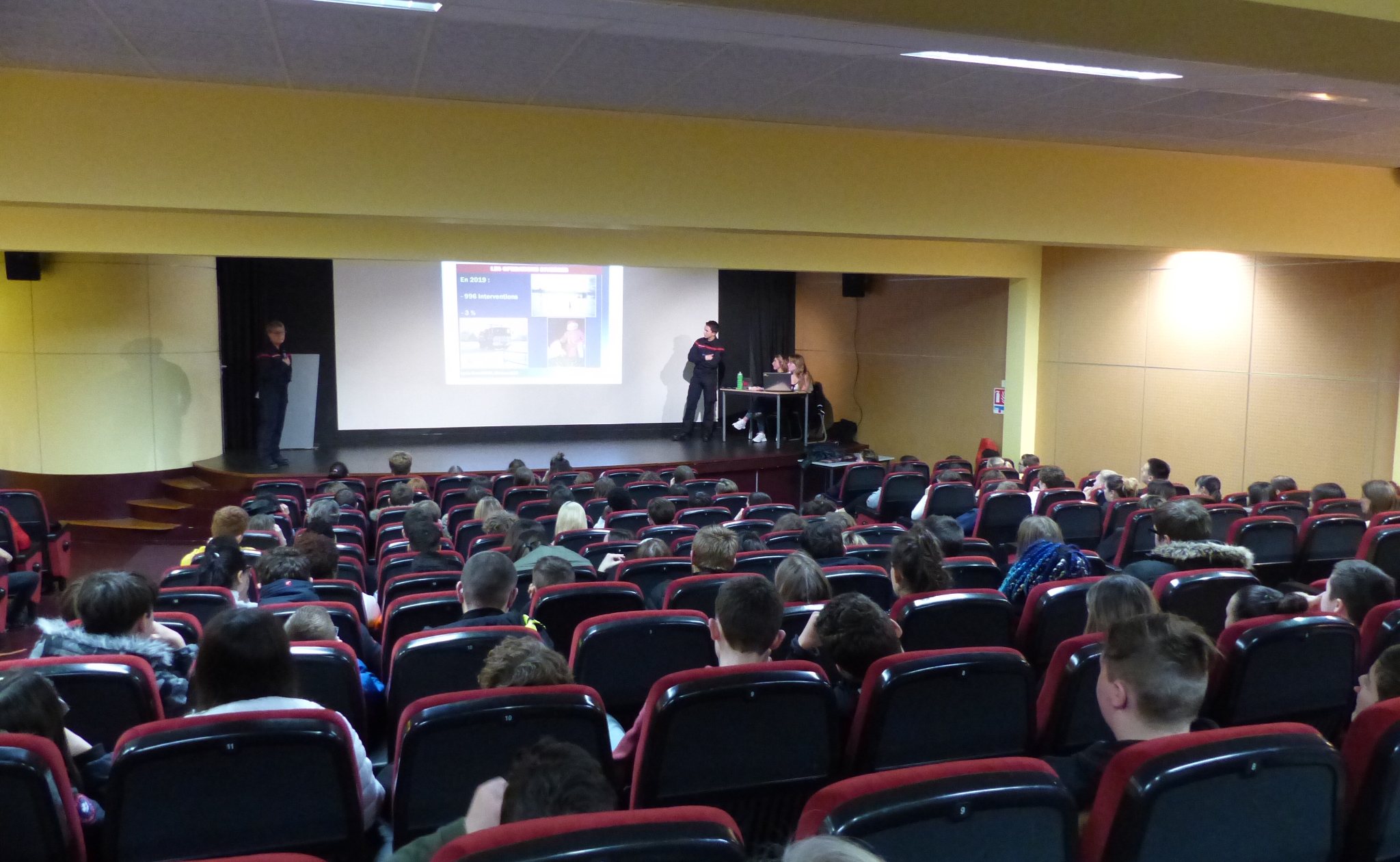 Le 9 Mars 2020, nous avons organisé une conférence sur le métier de pompier qui fut animée par l’adjudant-chef Murielle Leclerq, chef du centre d’intervention de Villemeux-sur-Eure et du sapeur Chalbazian âgé de 17 ans. 250 élèves étaient présents dans l’amphithéâtre du lycée Franz STOCK pour découvrir les spécialités, les types d’interventions et le nombre moyen d’interventions réalisées sur 1 année ainsi que le nombre de Sapeurs Pompiers en Eure et Loir.